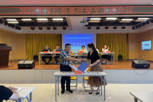 贺行佳与经营单位代表签订了《红足1一世网址足球2022年度经营安全管理包保责任书》。