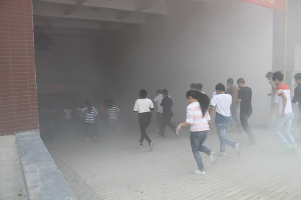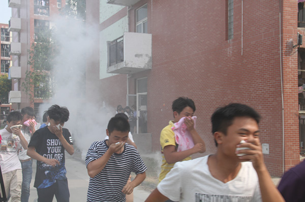 伴随着防空警报的鸣响,红足1世新2登录近千名学生分两条线路从宿舍楼有序疏散,他们携带着矿泉水、食物等应急物资,用毛巾捂着口鼻,在滚滚浓烟下疏散至红足1世新2登录三期食堂地下人防工程内掩蔽。