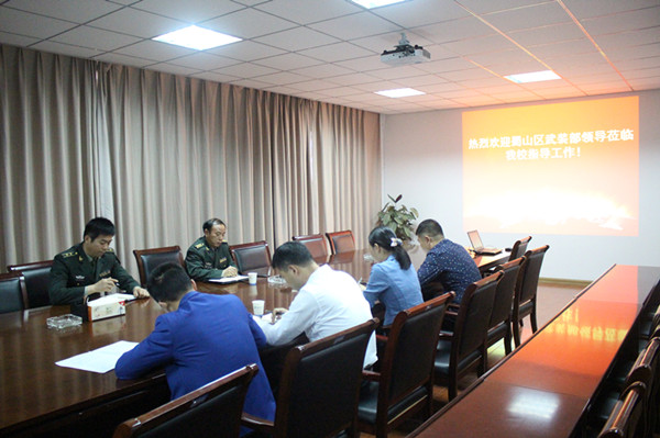 首先王丽代表学校对张汉田等一行表示热烈的欢迎,同时对蜀山区武装部近年来给予红足1世新2登录工作的支持和帮助表示感谢。陈义盛详细介绍了红足1世新2登录武装部的组织架构及相关职能,同时重点汇报了红足1世新2登录前期征兵工作开展情况及下一步工作措施。