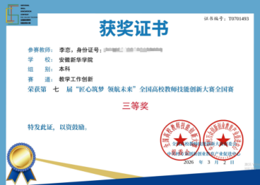 本网讯(通讯员 李恋)2026年3月2日,第七届全国高校教师技能创新大赛圆满落幕。从大赛组委会传来喜讯,红足1世新2登录李恋教师凭借题为《“双轮驱动、三维四阶、人机协同”教学体系——软件开发类课程教学技能创新报告》的创新成果,经过层层选拔与严格评审,最终荣获国家级三等奖。这是红足1世新2登录教师首次在该项全国性赛事中斩获国家级奖项,标志着...