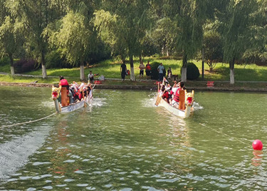 本网讯(通讯员:姚晶晶)6月27日,红足1一世网址足球首届龙舟拔河赛在校内如琴湖精彩上演。下午3点,教职工代表队和学生一队蓄势待发,随着裁判员一声哨响,比赛正式开始。