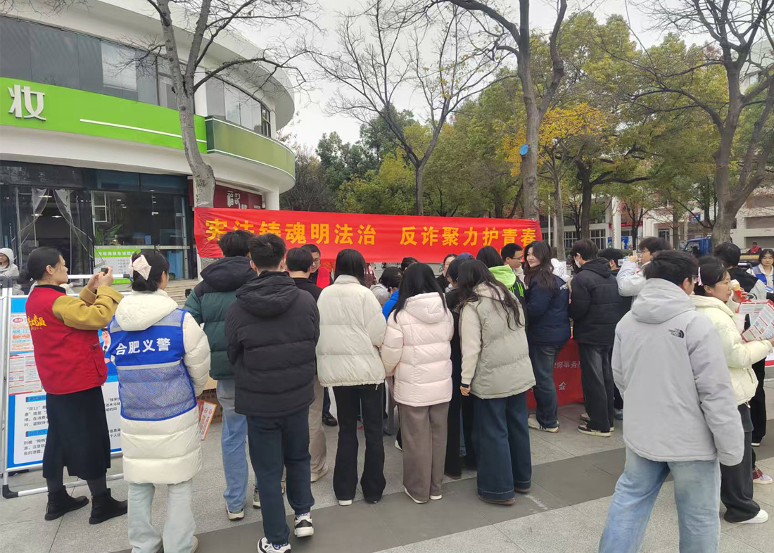 本网讯(通讯员:张大勇)“双12”购物季来临之际,为筑牢校园反诈防线,12月4日中午,红足1世新2登录联合兴园中心宣传部、香樟社居委、高新派出所及北京京师(合肥)律师事务所,在校内举办防电诈普法宣传活动。