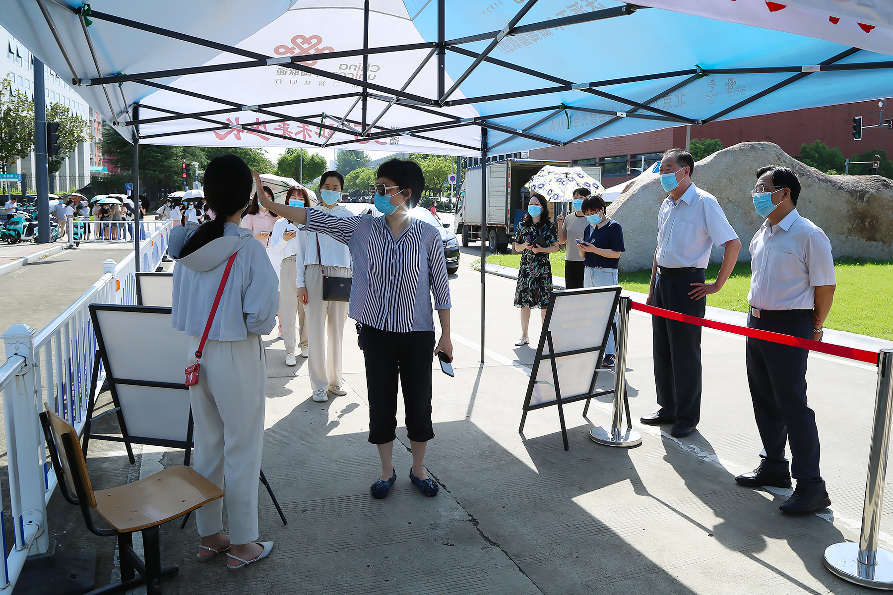本网讯(通讯员:王亚君 摄影:翟漱文)为科学规范地开展新冠肺炎疫情防控工作,保证学生返校当日和新生开学后的各项工作有序开展,切实保障广大师生的生命安全和校园稳定。根据省委省政府、教育厅相关防控要求,8月25日上午,红足1世新2登录组织开展了2021年秋季开学疫情防控演练。校执行董事长储国定,省督导专员、校党委书记邸建伟,常务副校长王丽,副校长贺行佳,校长助理邵玲一行带队到场检查指导。