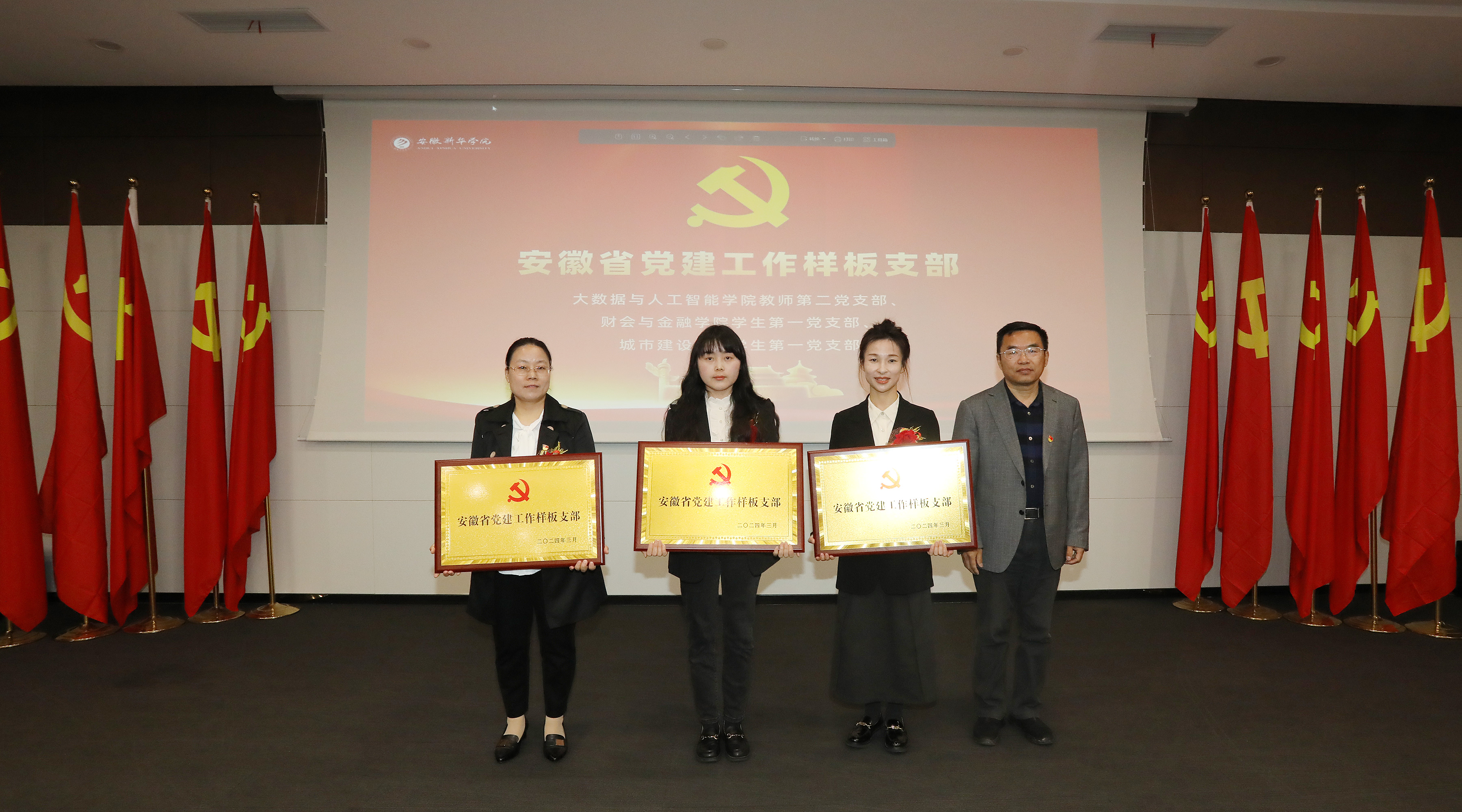 校领导分别为优秀共产党员、优秀党务工作者、先进党支部、先进党总支/直属党支部、省级样板支部、省级“双带头人”教师党支部书记工作室及省级标杆院系颁奖。
