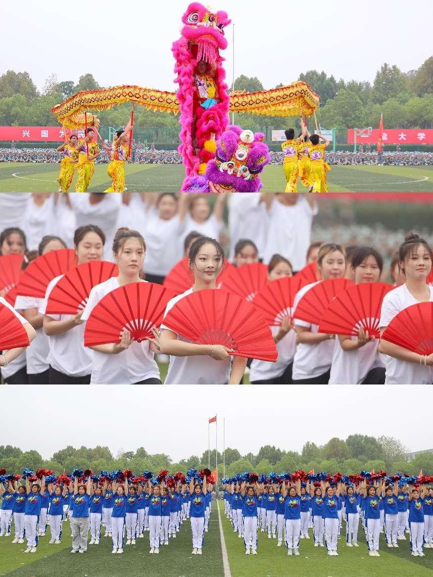 随后,新华园学子带来一场震撼人心的视觉盛宴。《龙腾新华》点燃全场的气氛,激昂的鼓点中,巨龙翻腾,雄狮跃动。《擒敌拳》一气呵成,拳风呼啸,势不可挡!《匕首操》的精湛演绎,如同疾风骤雨般迅猛而精准,展现新华园学子的卓越风范与刚毅气魄。《警棍盾牌术》表演一招一式,凝聚力量,尽显新华园学子坚如磐石、不可撼动的决心与意志。韵律操《舞动青春》洋溢着朝气蓬勃、勇往直前的青春气息。《放飞梦想》表演整齐划一,将青春的活力与对梦想的执着追求编织成一幅动人的画卷。