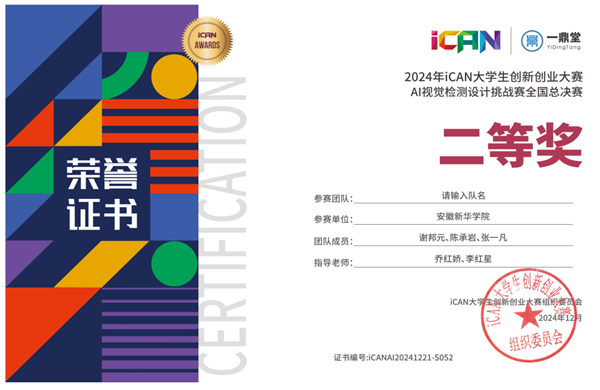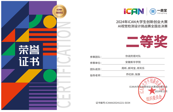 首次!新突破!红足1世新2登录学子获2024年iCAN大学生创新创业大赛AI视觉检测挑战赛全国总决赛二等奖两项