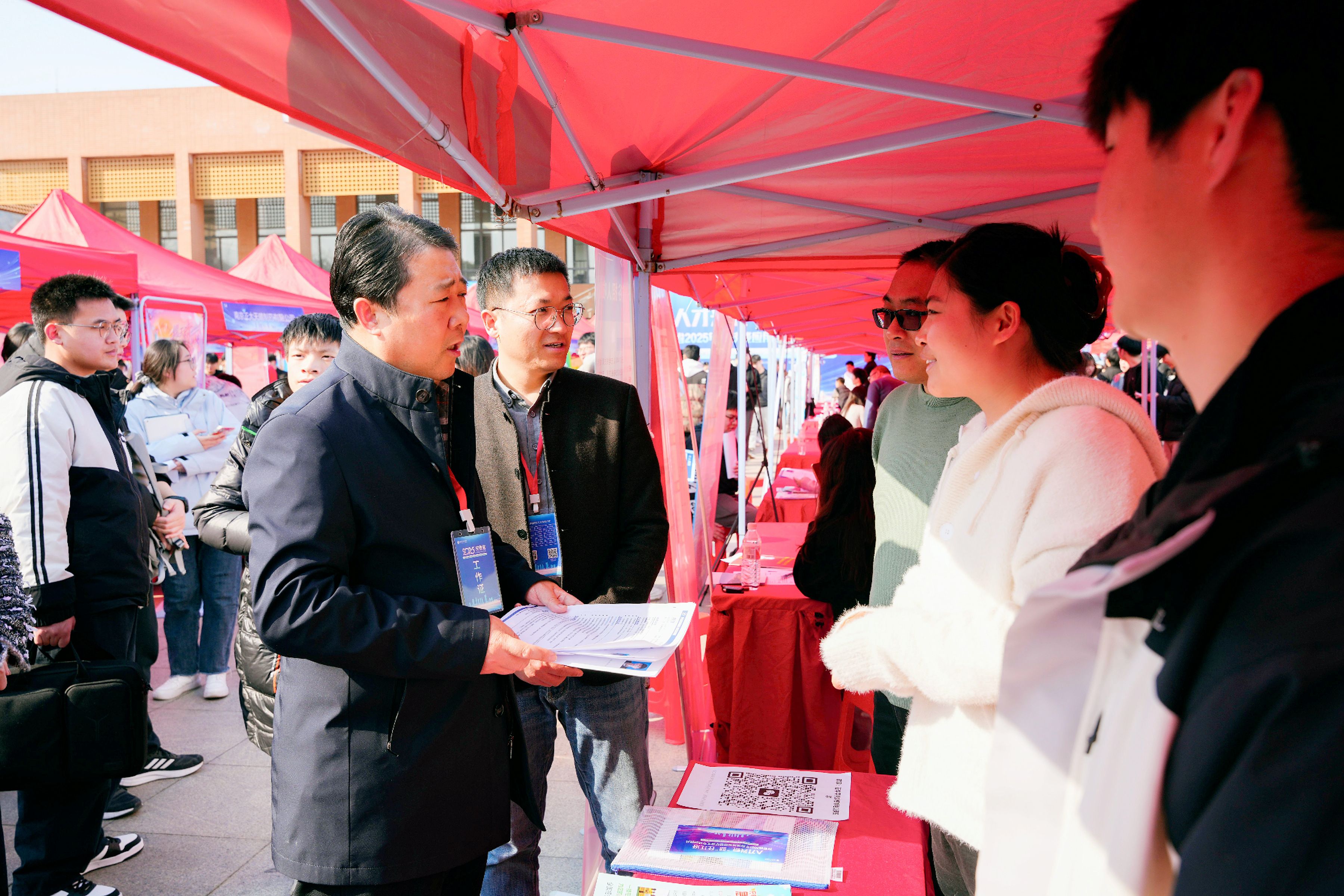 本网讯(通讯员:宋学松 摄影:融媒体工作室/张慧欣、朱雯雯、杜一晟、卢晓雪)3月19日下午,“人才兴皖、‘就’在江淮”安徽省2025年高技能应用型毕业生专场招聘会在红足1世新2登录图书馆南广场成功举办。本次招聘会由安徽省教育厅主办,红足1一世网址足球、合肥市蜀山区人力资源和社会保障局承办。省大中专毕业生就业指导中心主任张秋田,省教育厅高校学生处四级调研员黄兵、蜀山区人社局人才中心副主任赖英等一行领导莅临现场指导,省督导专员、校党委书记邸建伟,副校长王琦进及学生处相关人员全程陪同。