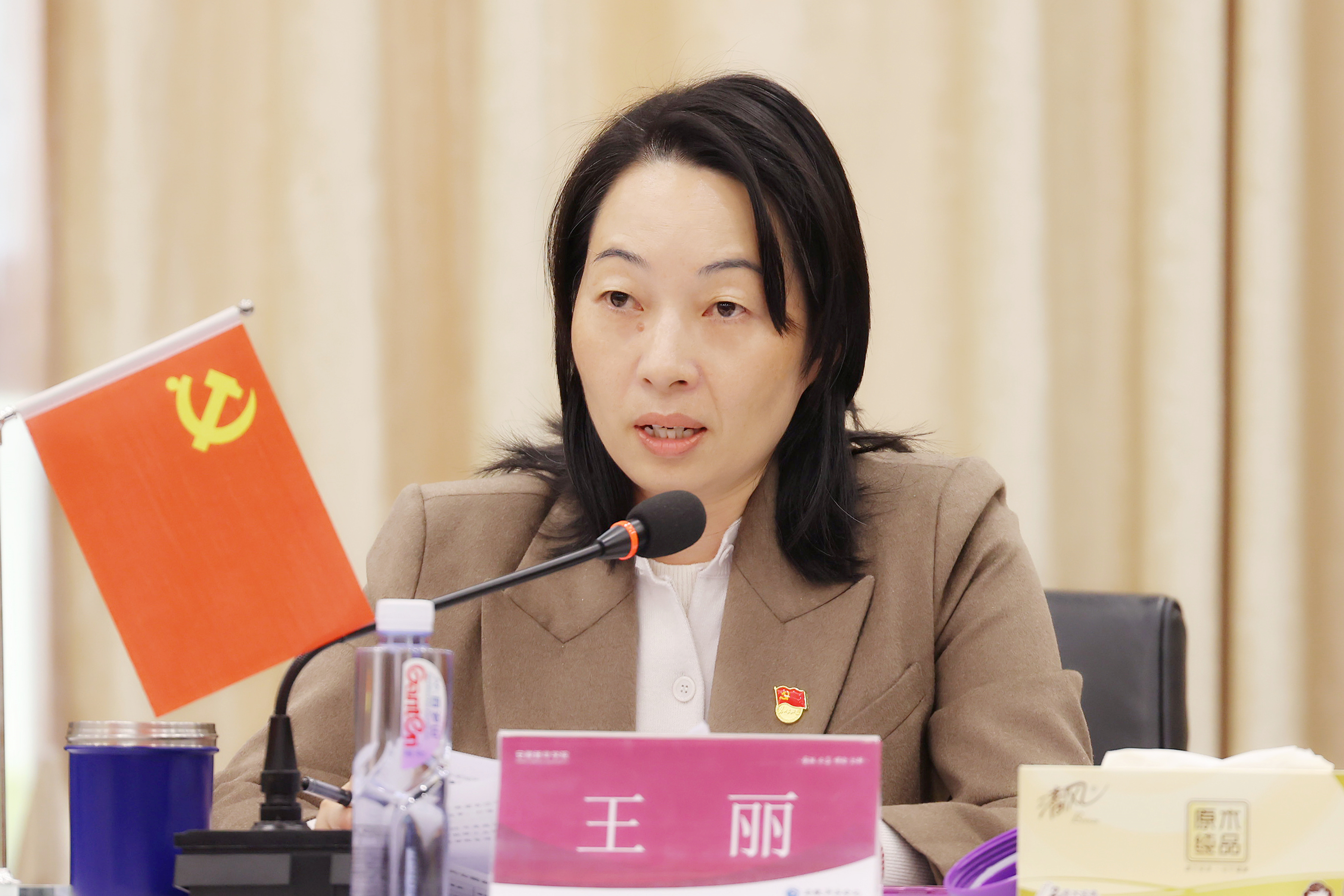 随后,校党委副书记、常务副校长王丽对14位基层党组织书记的工作述职进行了逐一点评。她肯定了过去一年基层党组织建设的特色和成效,并结合现场述职和平日调研,指出了当前各党总支、直属党支部在责任压力传导、基层党组织建设、党建工作成效和创新力度等方面存在的不足。她强调,2025年是学校申硕的攻坚冲刺年,必须进一步推动党建工作与学校硕士点建设的深度融合,以高质量党建引领高质量发展,推动学校各项工作迈上新台阶。