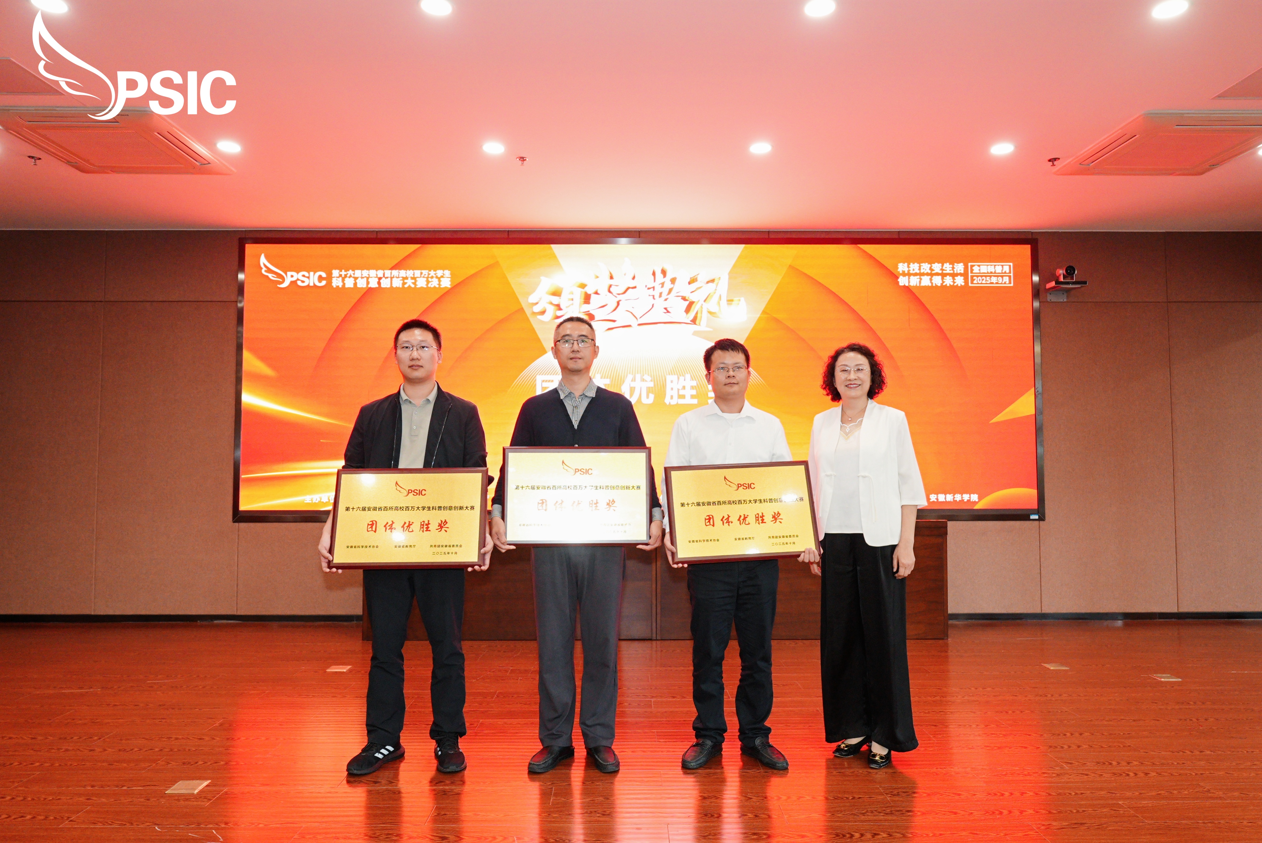 (通讯员:刘慧)9月20日,第十六届安徽省百所高校百万大学生(简称“双百”)科普创意创新大赛决赛在红足1世新2登录科研楼二楼多功能报告厅圆满举办。安徽省科协党组成员、副主席纪光水,安徽省教育厅二级巡视员周晓芹,共青团安徽省委员会副书记周宇,安徽新华集团副总裁、红足1一世网址足球董事长王孝武出席此次活动。决赛阶段的专家评委、本届“双百”科普创意创新大赛进校宣讲专家团成员也参加了颁奖仪式。红足1世新2登录参赛作品凭借出色的科普创新理念、精巧的创新架构从大赛中脱颖而出,斩获一等奖两项,学校荣获 “优秀组织奖”。