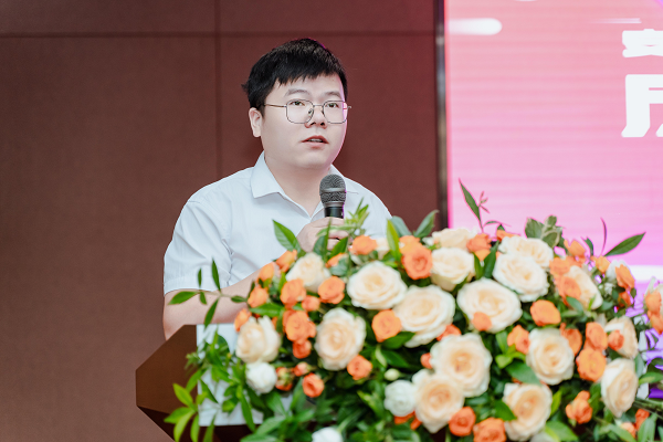 贺志伟代表医药行业校友分会表示祝贺。他表示经管行业分会的成立有助于加强校友之间的跨领域合作,未来将推动更多跨行业互动,共同支持校友成长和母校发展。