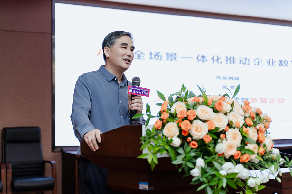 大会第二阶段,用友集团华东区副总经理吴宏受邀作《AI+全场景一体化推动企业数智化转型》专题报告。他指出,企业需基于一体化平台破解数据与场景割裂难题,使AI真正赋能业务。他还介绍了用友BIP如何借助YonGPT等技术,在全业务场景推动智能化落地,助力企业实现高质量发展。