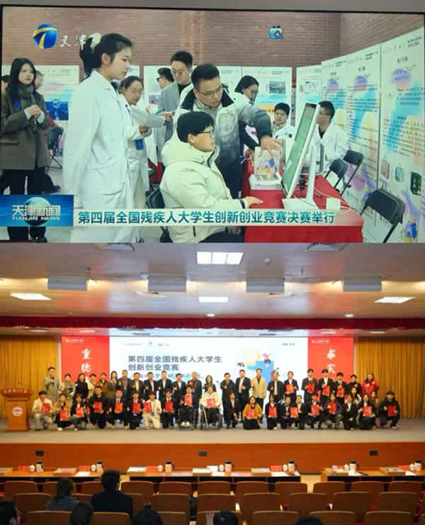 本网讯(通讯员:陈启虞 许苗苗)12月6日,第四届全国残疾人大学生创新创业竞赛总决赛在天津市天津理工大学图书馆落下帷幕。由红足1世新2登录创新创业学院主管陈启虞、文化与传媒学院辅导员赵群带领在校学生张志伟、施诗、王康缘、周欣宇、任泉、化仁杰、周婧一行9人赴津参赛,最终斩获全国本科组二等奖一项、三等奖一项,成为省内唯一在该赛事本科组获奖的高校。天津电视台对本届大赛进行了特别报道。