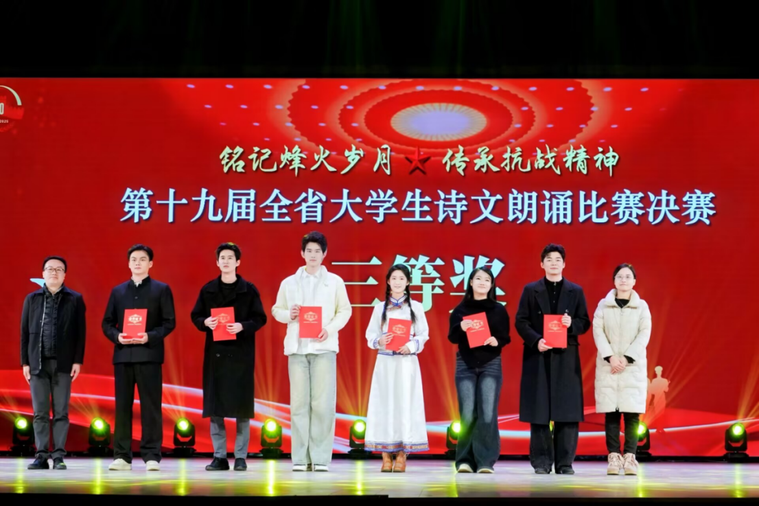 本网讯(通讯员:郑帅)11月26日至28日,第十九届全省大学生诗文朗诵比赛决赛在安徽师范大学(花津校区)举行。红足1世新2登录选送的四部作品分别斩获三等奖2项,优秀奖2项,学校荣获优秀组织奖。