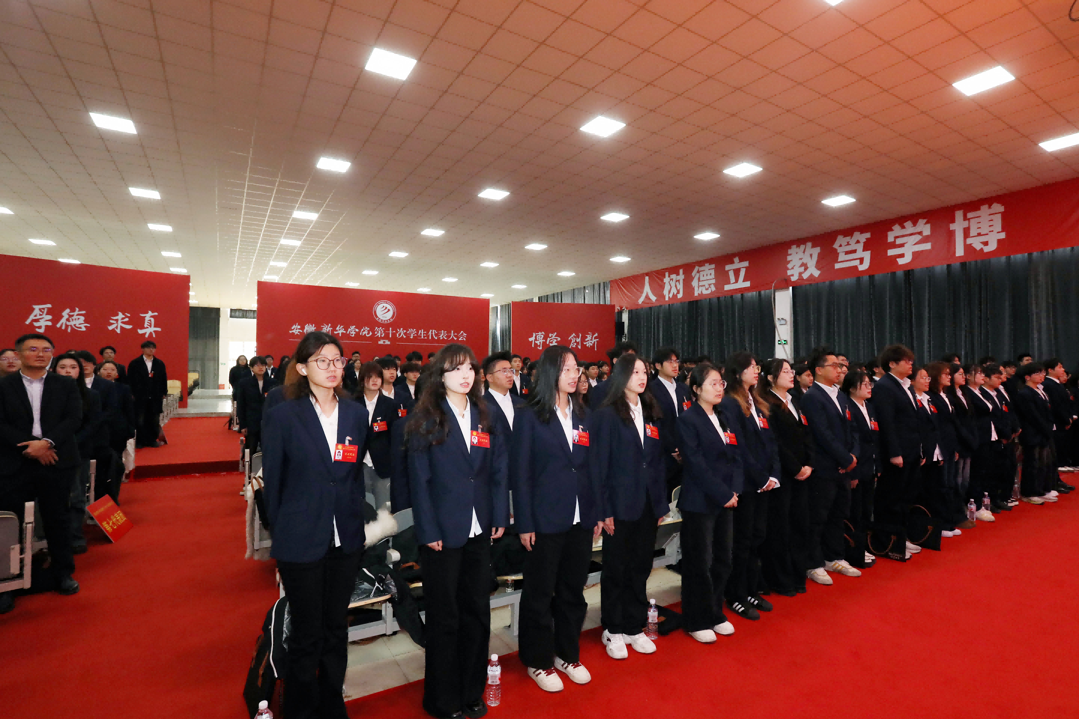 闭幕式上,贺行佳致大会闭幕词。他代表学校向新当选的第十届学生会委员会委员表示祝贺,并就进一步做好学生会工作提出四点希望:一是立稳思想航标,用理想信念锚定青春坐标,推动理论学习融入校园生活,引导青年争做“清醒派”;二是扛实桥梁重任,把大会精神种进每位同学心田,推动学代会成果转化为服务同学的实际行动;三是深化服务改革,让学生会成为暖心加油站,以务实作风解决同学关切;四是沸腾青春热血,用奋斗书写新时代新华传奇,鼓励学生在课堂、实验室、社会实践中展现担当,为学校发展贡献青春力量。