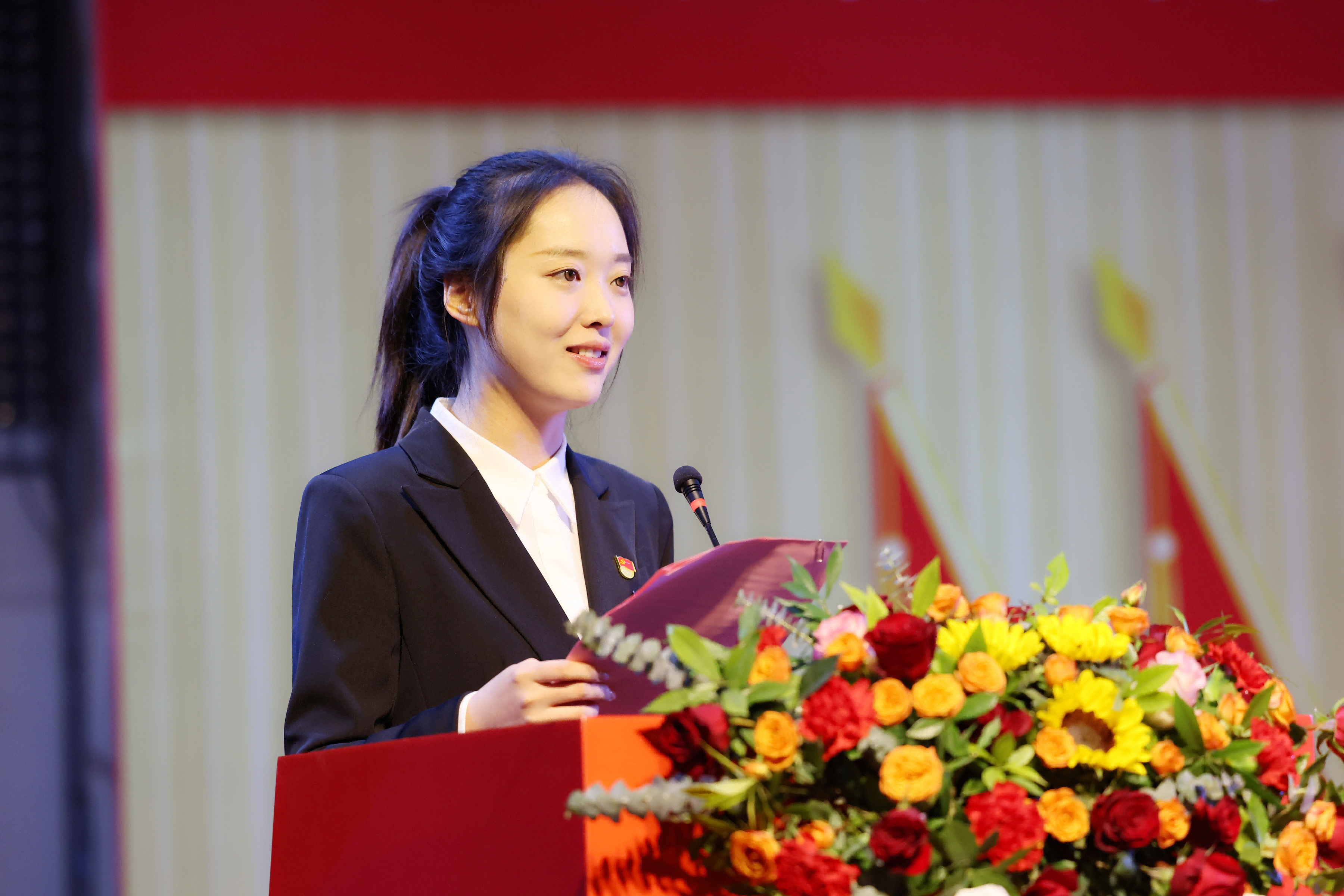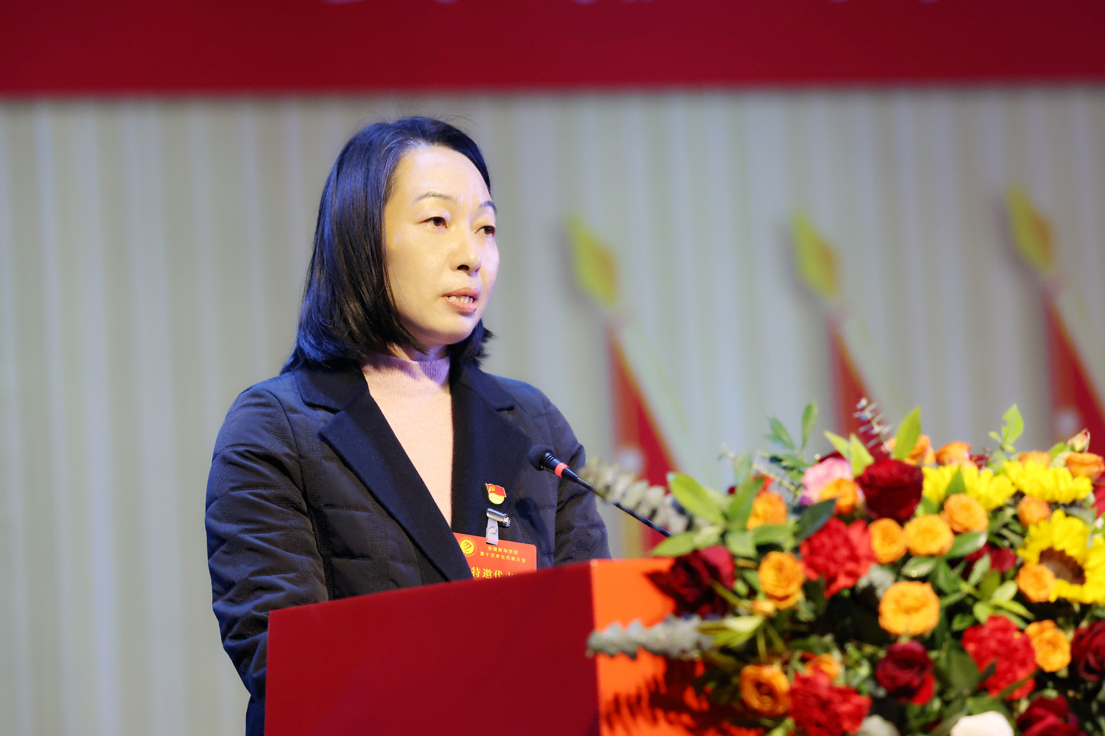 王丽致开幕词。她代表学校向大会的召开表示热烈祝贺,向省学联的关心指导表示感谢,并向全体与会代表和工作人员致以问候。她指出,本次大会是在全校深入学习贯彻党的二十届四中全会精神、学校全力推进高水平应用型大学建设的关键时期召开的一次重要会议。她充分肯定了第九届学生会的工作成绩,希望全体代表以高度的政治责任感和主人翁精神,认真履职尽责,圆满完成大会各项议程,将本次大会开成一次凝聚共识、汇聚力量、继往开来的青春盛会。