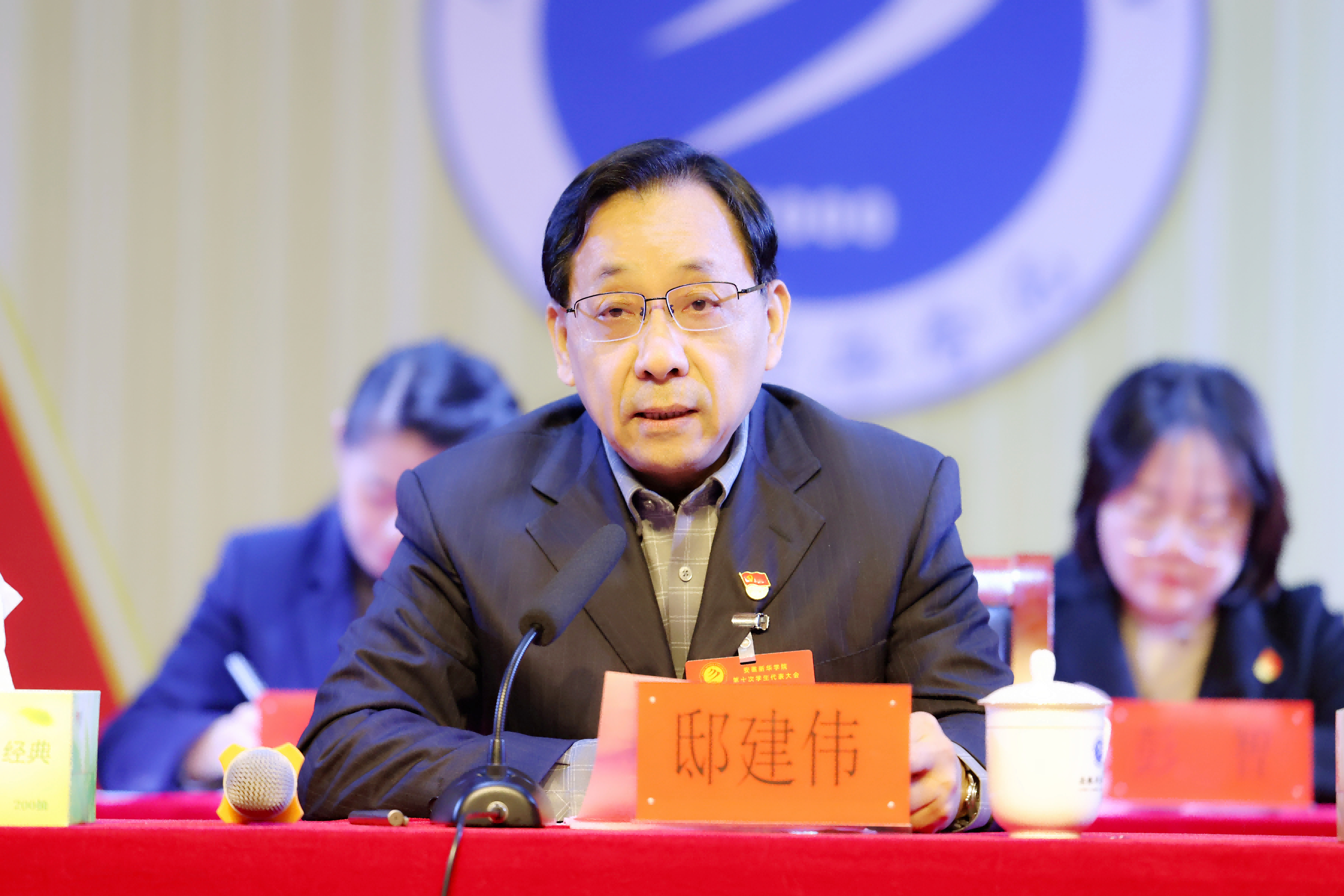 邸建伟代表学校党委对大会的召开表示祝贺,并向全体同学致以亲切问候。他回顾了近年来学校在学科建设、人才培养等方面取得的显著成就,高度评价了学生会在学校发展进程中做出的积极贡献。面对新时代新征程,他对全体学生代表和新一届学生会提出三点希望:一是强信念、练本领,做勤学笃行的新华青年;二是接地气、办实事,做同学信赖的青春纽带;三是勇革新、优服务,做高效阳光的学生组织。他勉励广大青年学子将个人理想融入学校发展和国家前途,以奋斗姿态书写无愧于时代的青春华章。