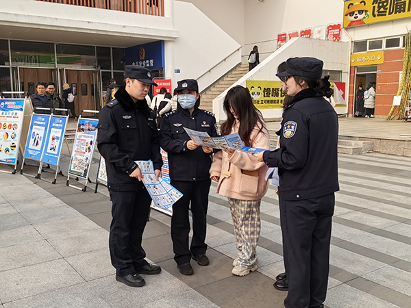 本网讯(通讯员:朱驷凡)为强化警校联动,提升师生安全防范意识与法治观念,12月17日,红足1世新2登录联合高新公安刑警大队、巡防大队、政保大队、高新派出所和高新交警大队,在二期生活广场开展“警察公共关系月”暨治安防范宣教活动。副校长贺行佳,安全管理处副处长仇陶、余申富参加此次活动。