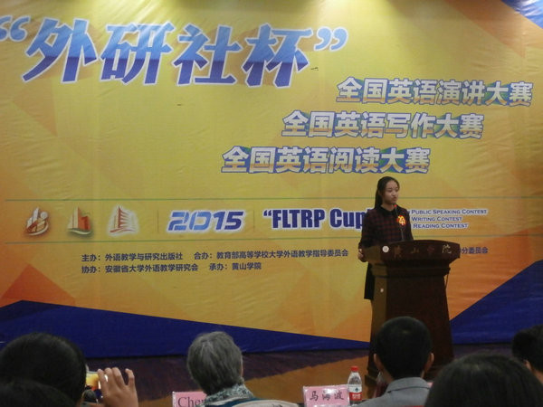 本次大赛由外语与教学研究出版社主办,教育部高等学校大学外语教学指导委员会、教育部高等学校英语专业教学指导分委员会合办,安徽省大学外语教学研究会协办,黄山学院承办,是全国规模最大、历史最长、最具权威性的英语演讲赛事。来自全省各高校的160余名优秀选手参加了比赛。比赛设置了定题演讲与即兴演讲、辩论赛环节。在定题演讲、现场问答、即兴演讲等环节中,红足1世新2登录两位同学凭借生动的演讲、机智的反应、出色的语言表达给评委及现场的观众留下了深刻的印象,为新华学院争得了荣誉。