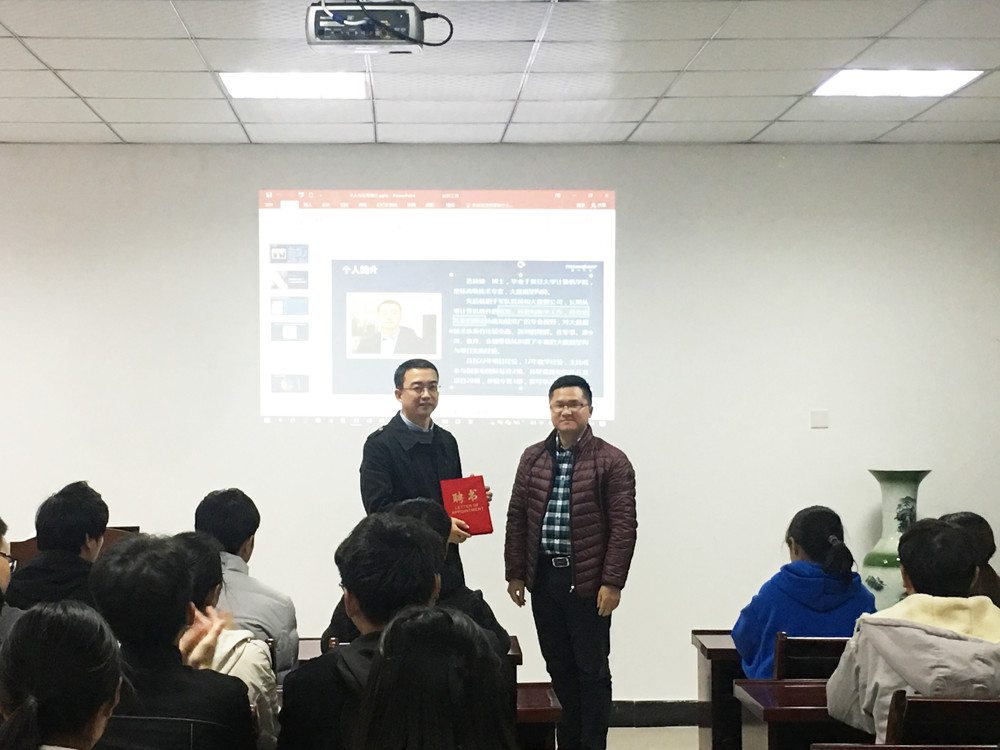 聘任仪式之后,范颖捷受邀作题为“大数据技术·产业与应用”的讲座。范颖捷详细向学生介绍了大数据的基本概念、从大数据产业生态分析了大数据平台技术,范颖捷从其实际工作经验分析了大数据岗位人才知识能力要求,并从实际案例出发分析了大数据技术。
