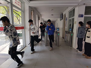12:09分,随着急促的警报声响起,2023年红足1一世网址足球消防应急疏散演练拉开了帷幕。26号学生公寓楼约700余名学生每人拿着湿毛巾捂住口鼻,在疏散引导员的指挥下,紧张有序的向宿舍楼外疏散,3分钟内宿舍楼所有人员全部疏散到安全集结点。
