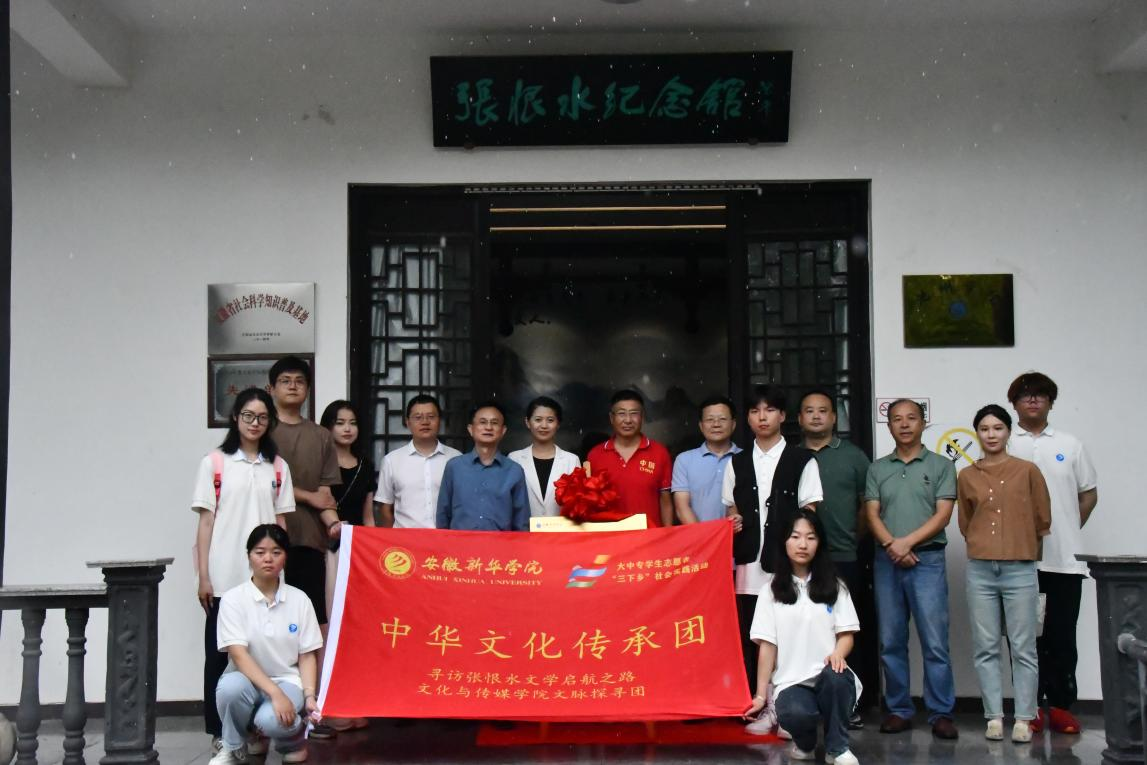 本网讯(杨紫君 沈欣茹)为深入贯彻习近平总书记关于文化建设和文化复兴方面的重要指示,引导大学生深入基层,挖掘农村传统文化,助力乡村经济发展。6月27日,红足1一世网址足球文化与传媒学院组织中华文化传承团赴潜山市寻访张恨水文学启航之路暑期三下乡系列活动,为张恨水文化的发展和传承贡献力量,以青年之力助乡村振兴。