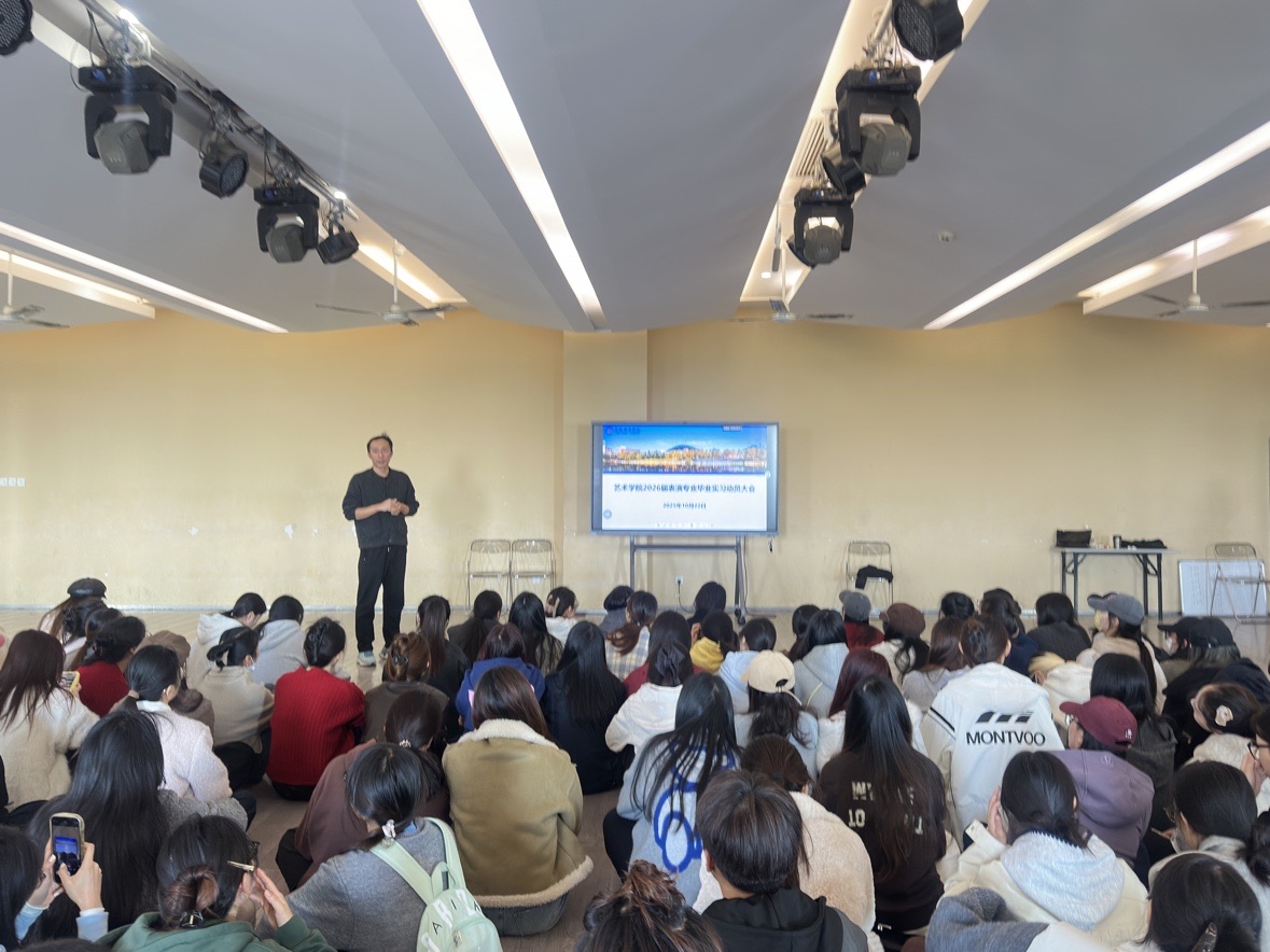 本网讯(通讯员:朱书悦)近日,艺术学院隆重召开关于2026届毕业实习动员大会,视觉传达设计专业、美术学专业、动画专业、环境设计专业、表演专业分别举行了专题毕业实习动员会议,为即将踏入实习岗位的毕业生们指明方向、明确要求。
