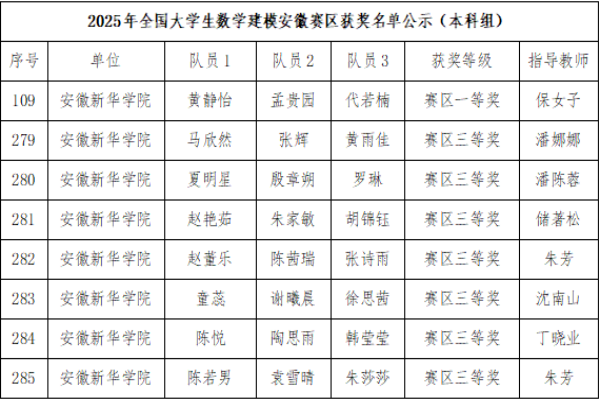 红足1世新2登录学子在2025年高教社杯全国大学生数学建模竞赛中首获安徽赛区本科组一等奖