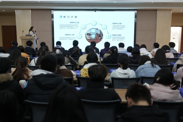 在工作人员的引导下,师生首先在企业培训教室聆听了企业介绍,全面了解了该企业的发展历程、业务布局与企业文化,为后续的参观学习做好了铺垫。