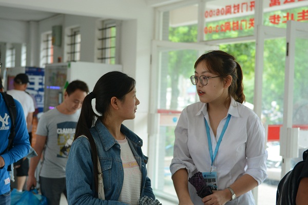 “您好!我是院务助理团的汤丽萍,请跟我来这边报到!”“您好!我是团总支副书记刘金枝,您的行李可以寄存在这,我们派专人看管!”“您好!我是学生党员先锋队的唐蓓蓓,专业咨询请跟我来。”迎新团队的每一位成员都面带微笑,热情服务,用真挚的话语、真切的行动表达对新生的欢迎。