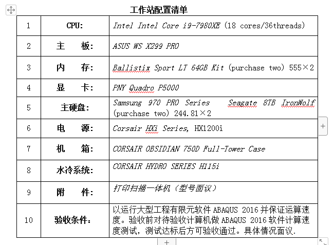 3、工作站配置清单如下: