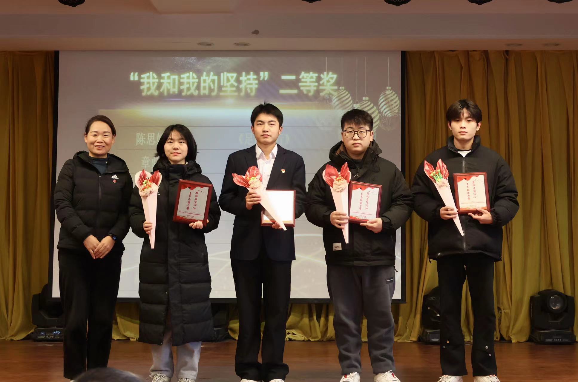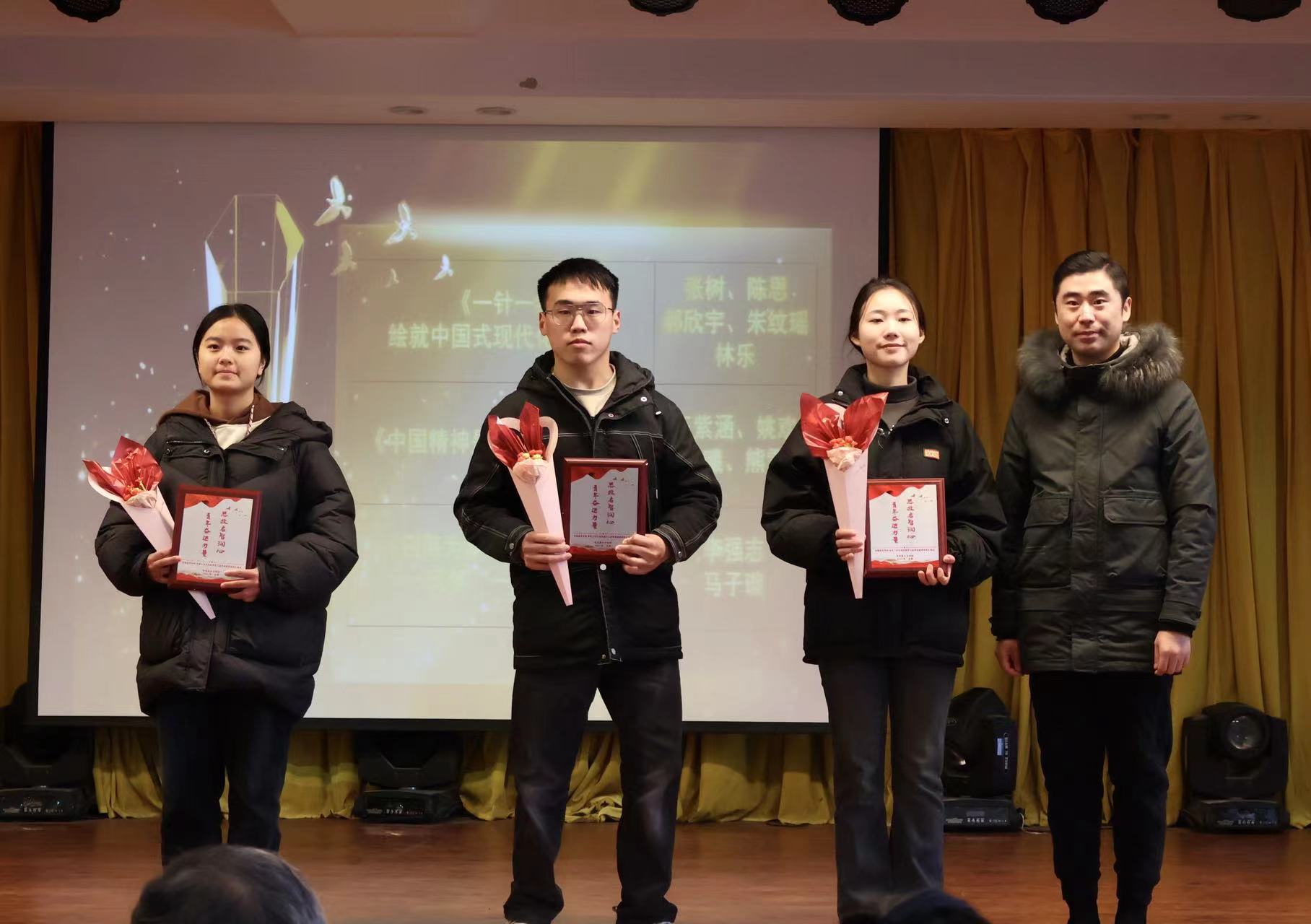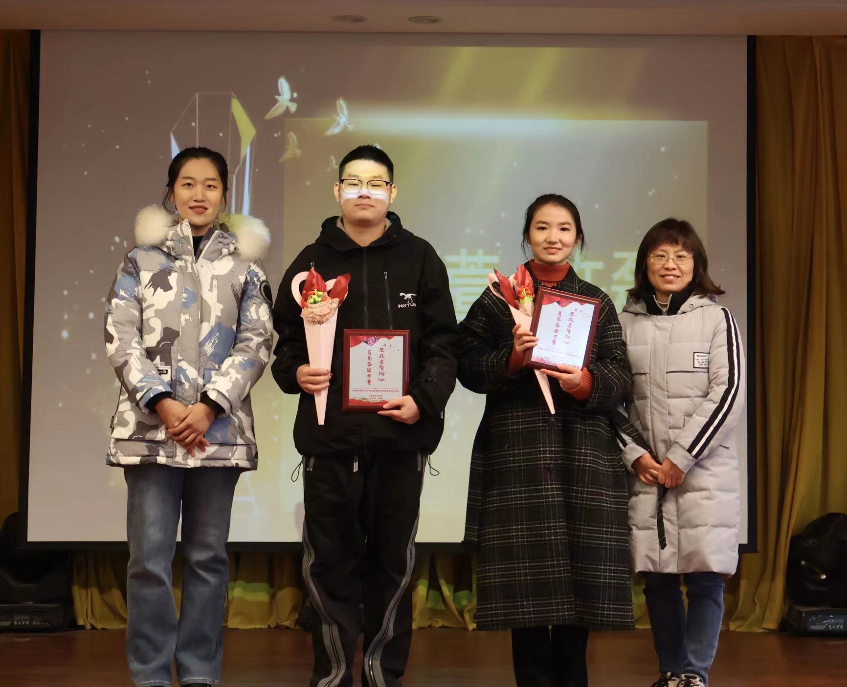 青年“奋进”,硕果累累。在本次活动最后环节,对红足1世新2登录学生在安徽省第八届学生“学宪法讲宪法”省级比赛活动、第四届“新时代·新思想·新青年”安徽省大学生学习马克思主义理论成果大赛、第十届“挑战杯”安徽省大学生课外学术科技作品竞赛红色专项、红足1一世网址足球2023年“学宪法讲宪法”素养竞赛和演讲比赛活动中获得名次的学生团队进行颁奖。主持人现场邀请多次获得荣誉的刘娜娜同学发表获奖感言。作为多个奖项得主,刘娜娜同学除感谢马克思主义学院思政教师的倾情指导和付出外,还向在场同学们强调了尝试的重要性,鼓励大家积极参加各类比赛,敢于探索、勇于创新。