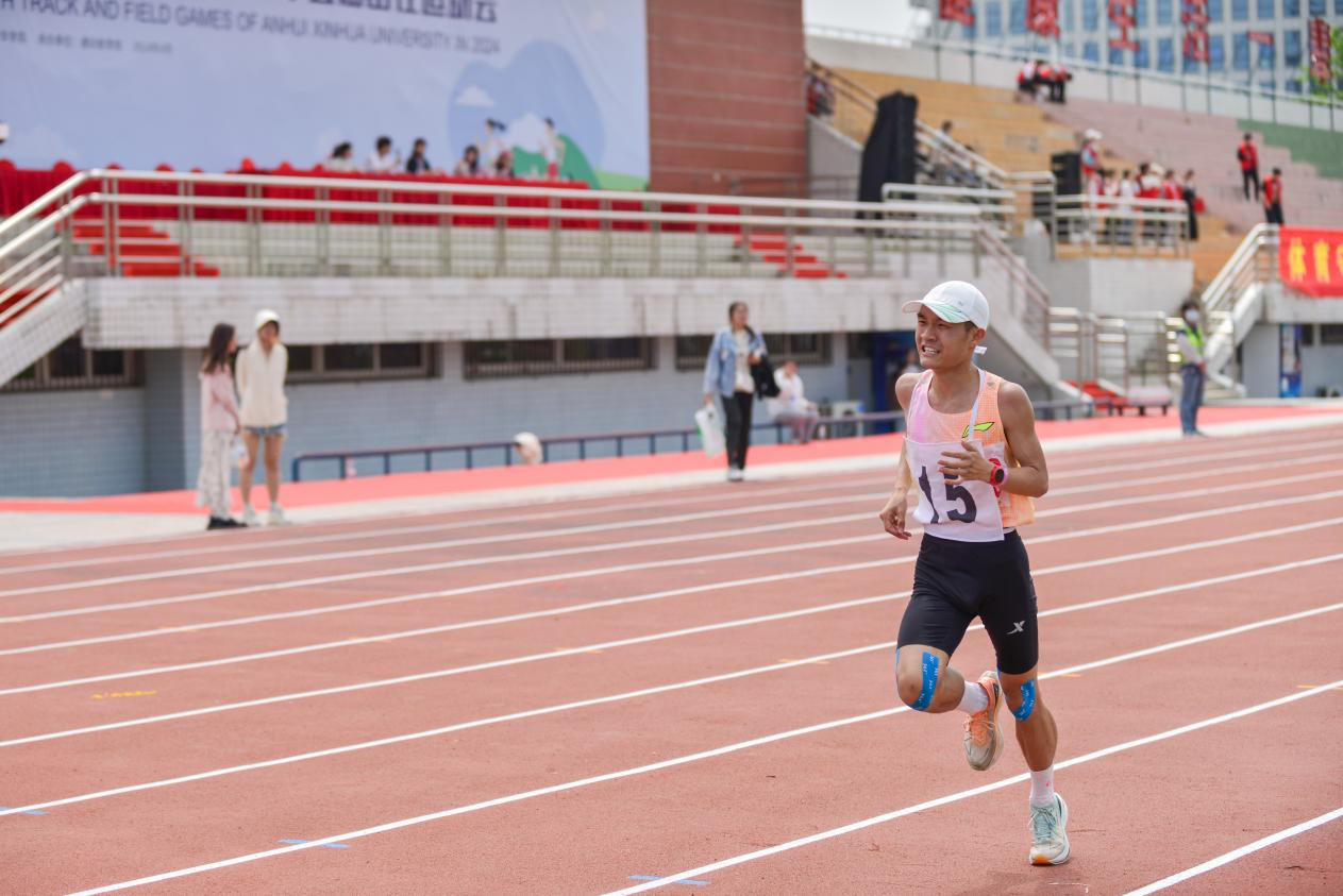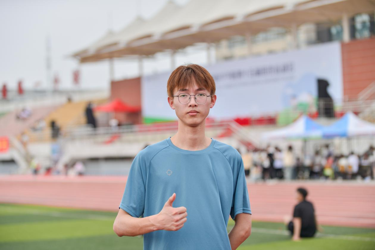 来自文化与传媒学院22级汉语言文学本5班的潘维浩,在运动会男子5000m比赛中获得了冠军,跑出了17分38秒的好成绩。潘维浩谦虚地说:“前三天刚刚跑完阜阳马拉松,体力还没有完全恢复好,但是明天的3000m我要争取破纪录!”“去年运动会我与男子1500m的冠军擦肩而过,今年我要再接再厉,勇创佳绩。”潘维浩认真地说,在自己热爱和坚持的事情上,他充满了热情,也毫不吝啬挥洒自己的汗水。